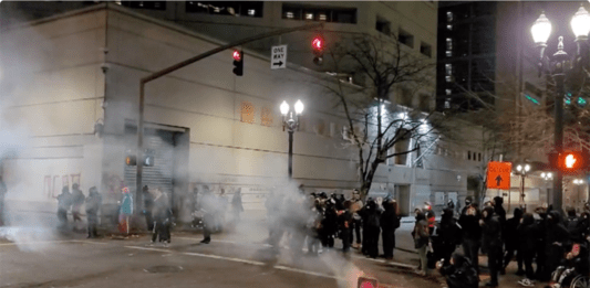 via RT Portland police declared a riot on Friday night, after protesters, angry at the acquittal of Kyle Rittenhouse, began smashing windows and hurling objects at the officers. Some 200 people gathered in downtown Portland, Oregon soon after Rittenhouse was found not guilty of murder in a fatal shooting that saw two men killed and … Continue reading WATCH: Portland Rittenhouse Protest Escalates Into a Riot